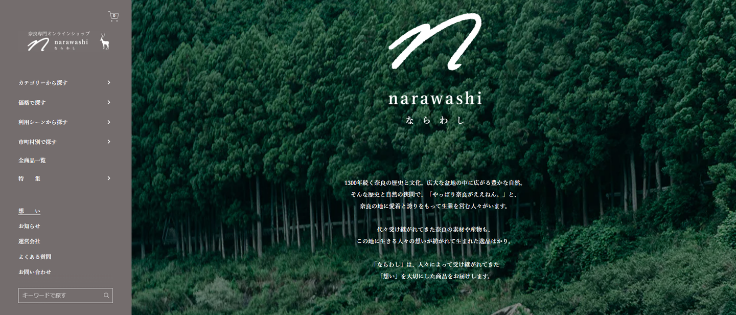 1300年続く奈良の歴史と文化、自然の狭間で、代々受け継がれてきた奈良の素材や産物を販売するECサイト。奈良の地で紡がれてきた「想い」を大切にした商品をお届けしています。