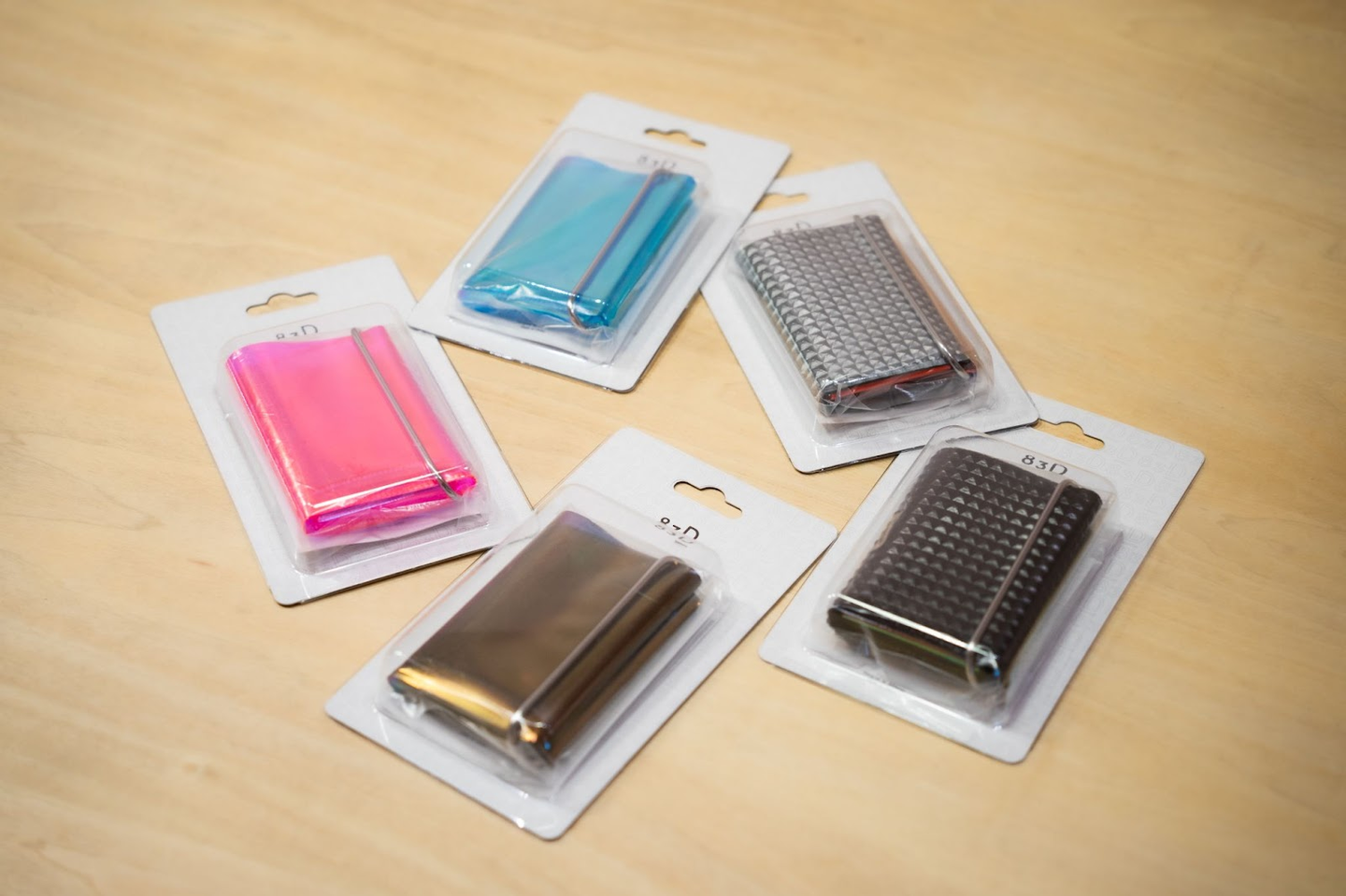 「CW01」「CW02」は財布の素材もそうですが、パッケージもすごく高級感がある個箱です。「CW03」「CW04」のパッケージにはブリスターパックを採用しました。中身が見えるパッケージなので、商品展示の役割も果たしてくれますし、中に「CW03」「CW04」を入れてみるととても映えるんですよね。