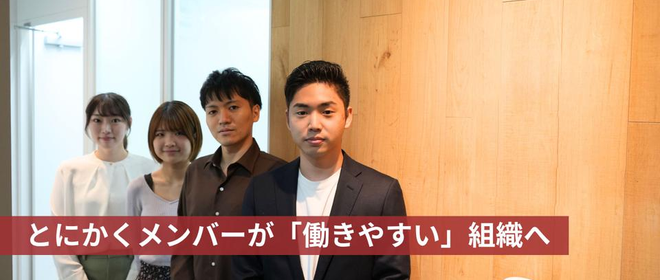 代表の岡野が「堅苦しい敬語禁止」を提案。「○○長」や「○○リーダー」をほとんど置いていないため、先輩にもかしこまらず、率直な意見を言いやすいです。