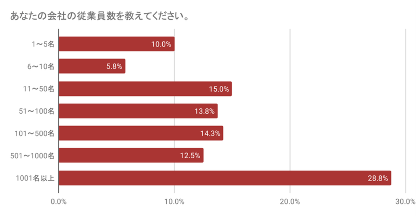 また、今回の調査対象者の企業規模は「1,001名以上」が最多の約3割でした。