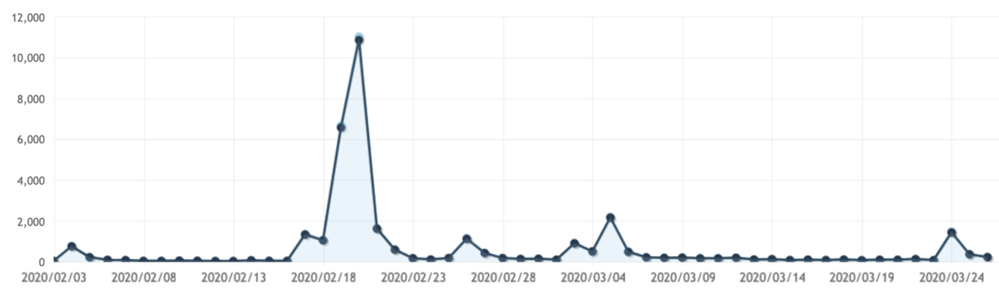本社移転の関しての配信日が2/19なのですが、2/3とか2/25とか3/4とかにある小さな山は他のリリースを出した日なんですけど、、、2/19だけ桁違いですね。笑