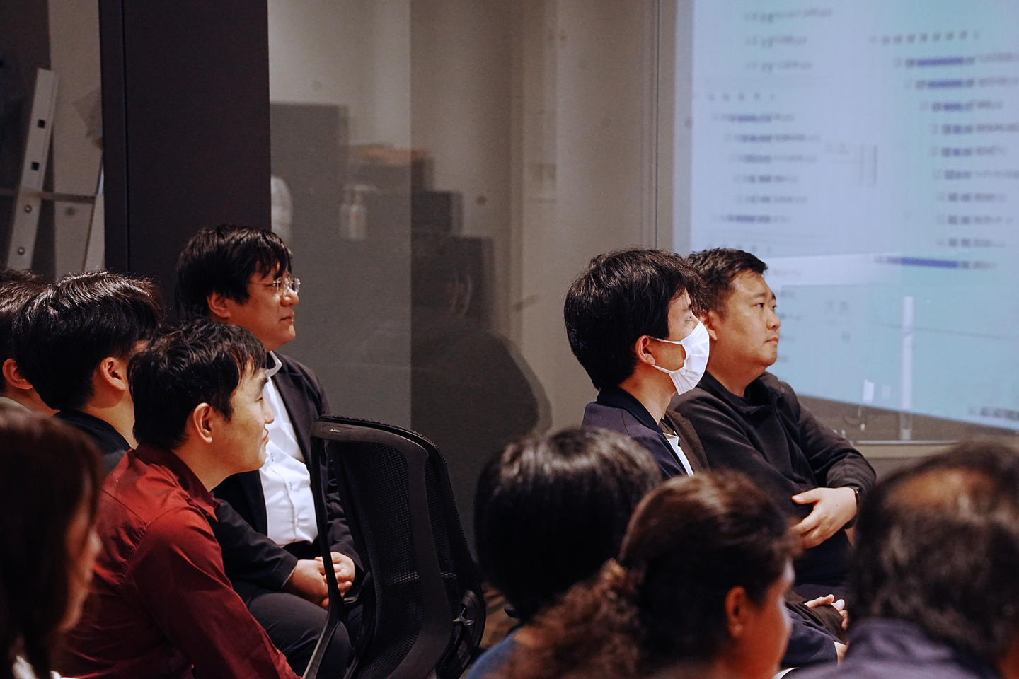 前半では今年度の上期総括報告会がCEO西村の主導の下オフライン&オンラインで行われました。