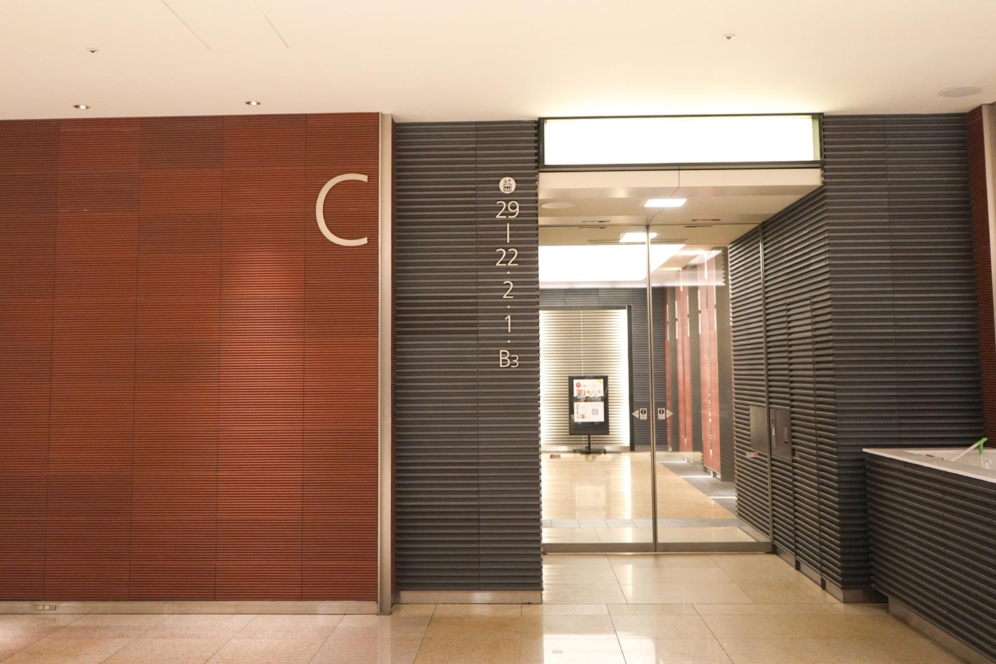 建物の中に入ったらエレベーターホールCにて23階へ