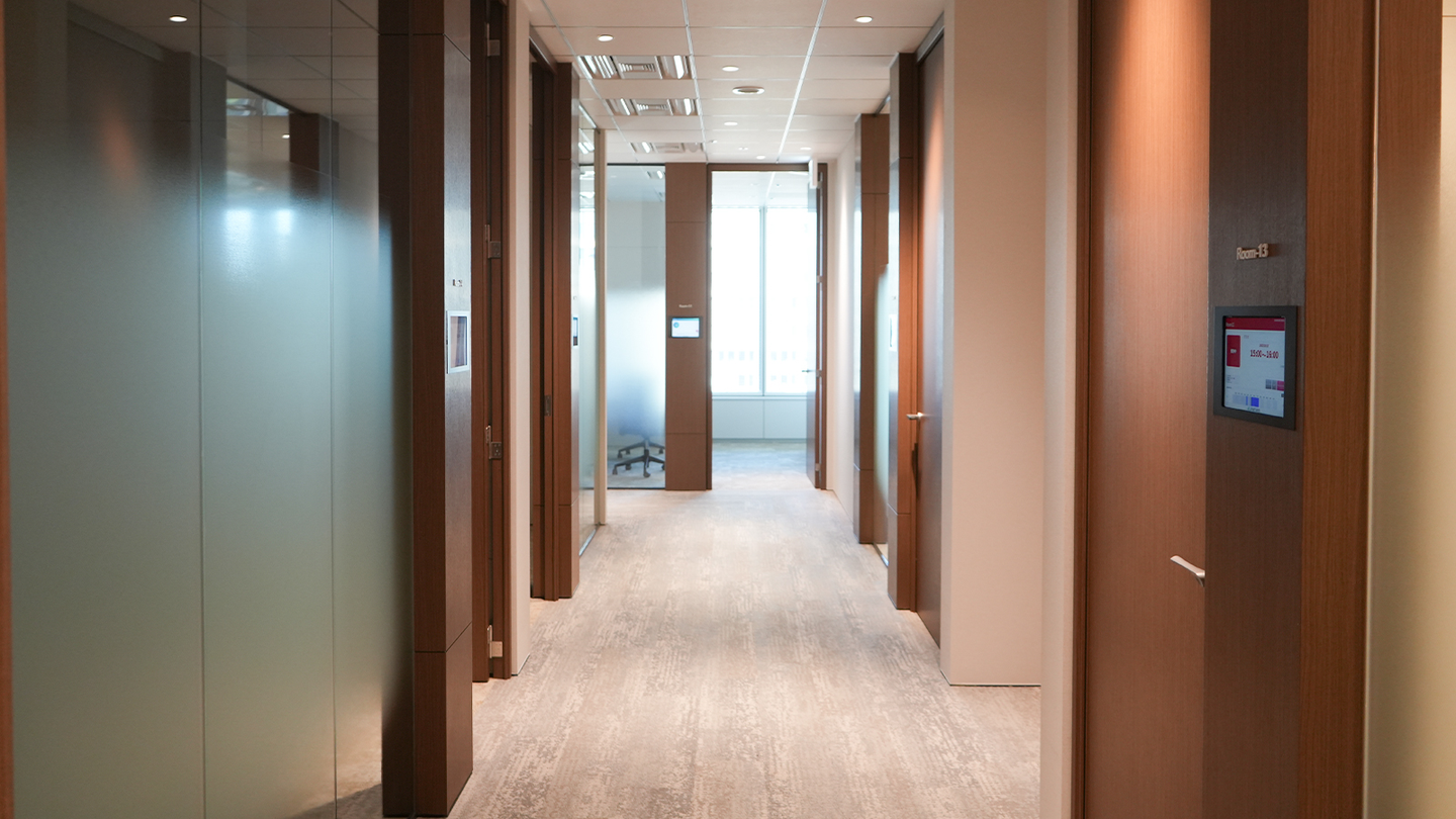 来客対応や打ち合わせなど、目的に応じて柔軟に使えるよう、落ち着いたトーンでまとめられています。プライバシーにも配慮された設計で、安心して会話に集中できる環境を整えています。