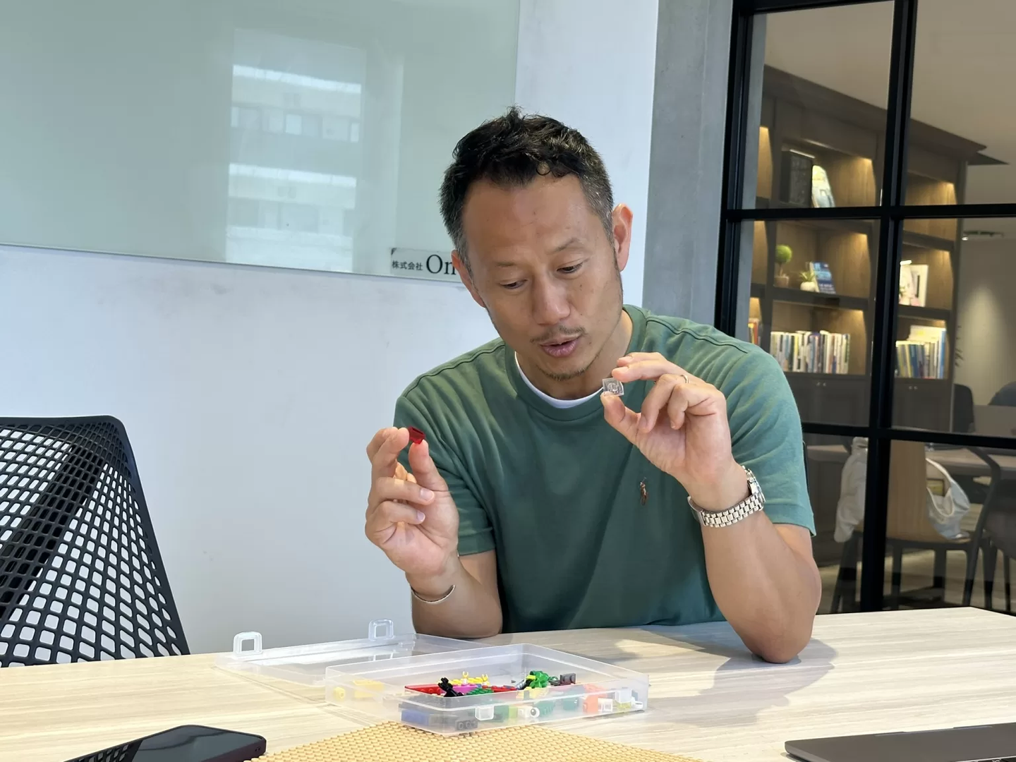 今産学連携させてもらっている九州産業大学の聞間先生に、経営戦略会議をレゴブロックを使ってファシリテートしていただくっていう機会があったんです。その時に新しいアイディアや、これまで自分が考えてなかったような潜在的な気づきなどが生まれてきたので、レゴブロックってすごいツールだなと思いました。そこで、「これは講座でも使える!」と思ったので、聞間先生にそういう講座を作れませんかと相談をして「アイデンティティドリブン」という講座を共同で開発しました。