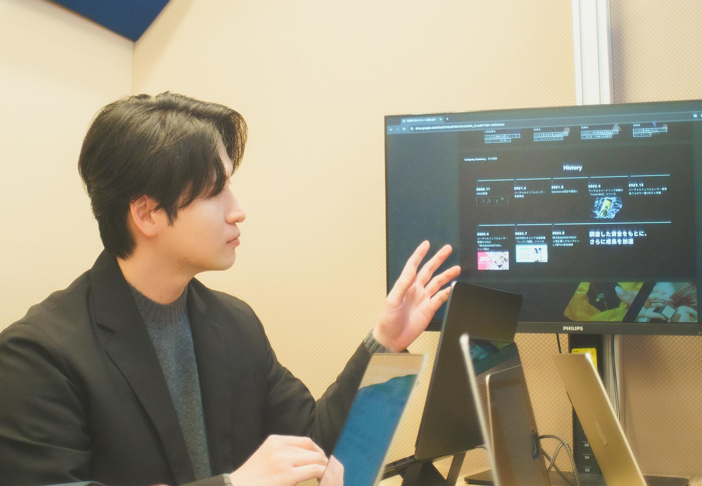 インタビュアー: 今回も、HADOの新規事業「モニタ」について、事業部長の山崎さんにお話を伺います。