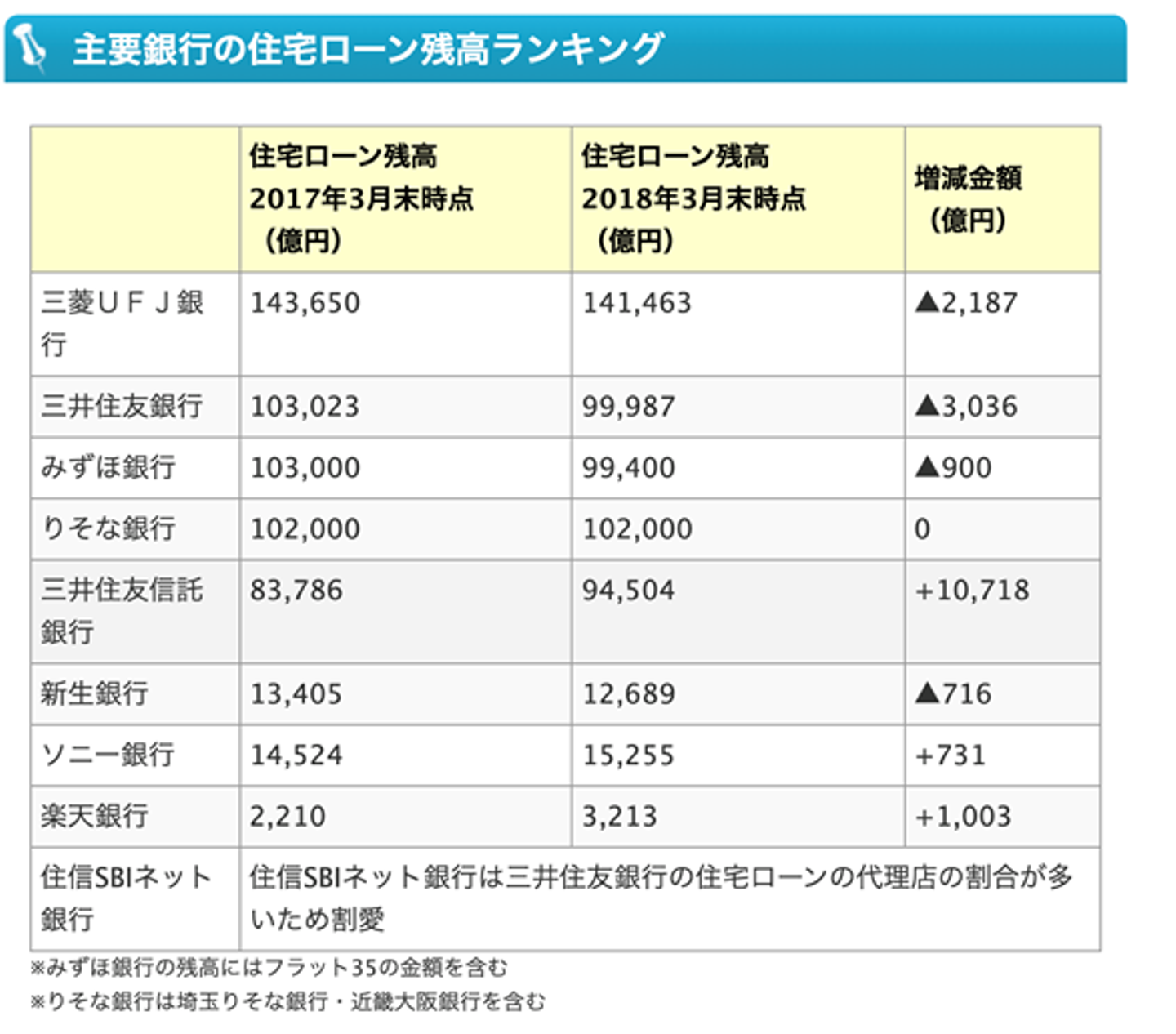 住宅ローンの残高の多い銀行をランキング形式で紹介からの引用です。