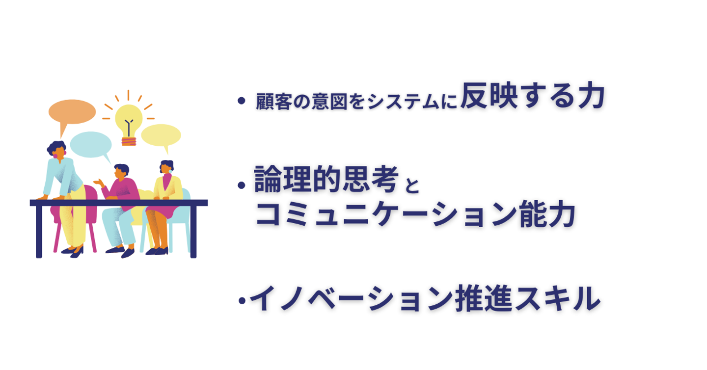 現場の設計や要件定義のメンバーとして、顧客のニーズを正確に把握し、それを具体的なシステム要件に変換する能力が重要です。
