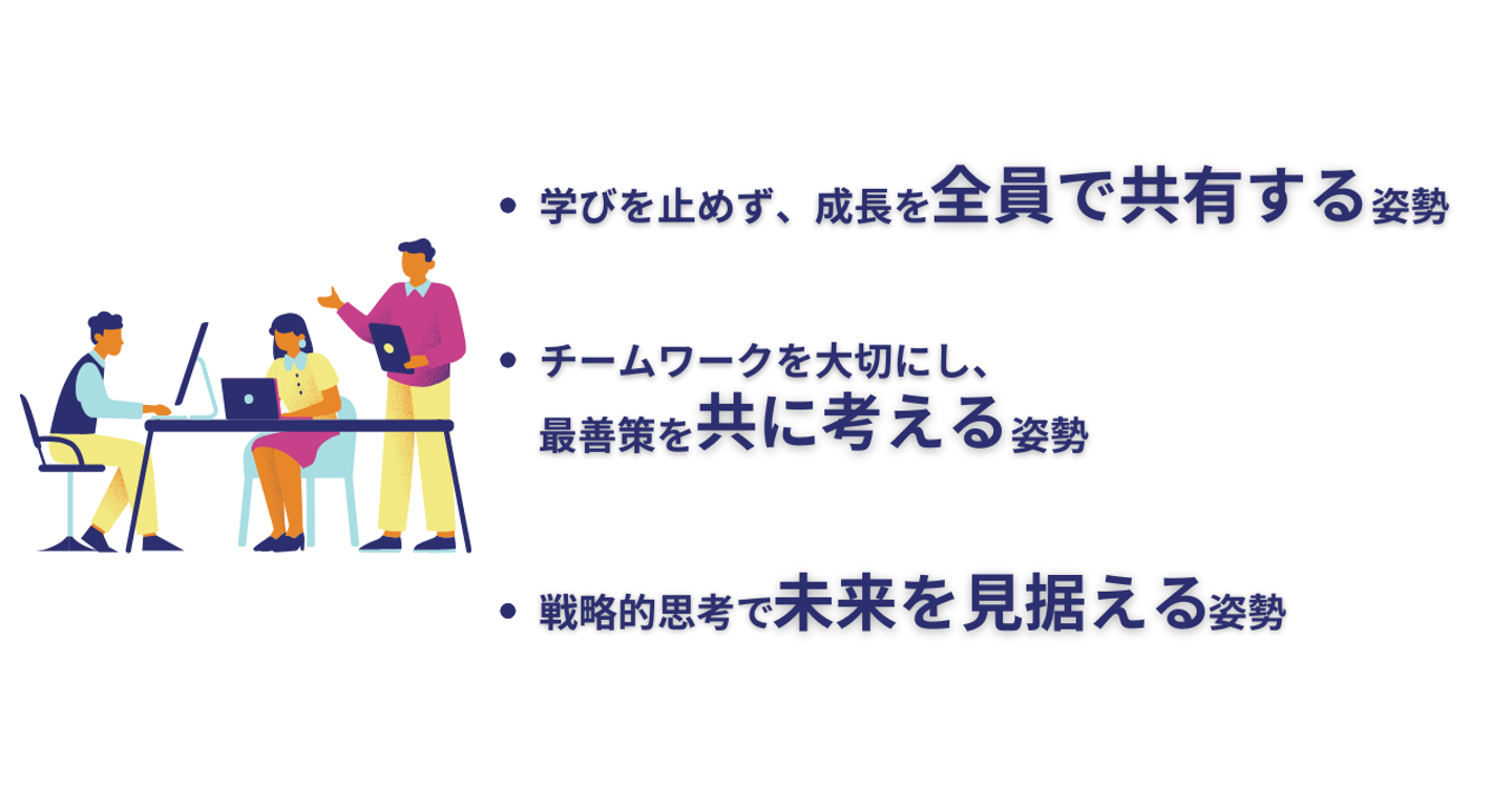①学びを止めず、成長を全員で共有する姿勢