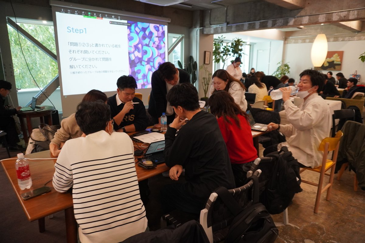 予め10つのグループに分かれて着席しており、そのグループごとに問題が配布されました。 配布された問題を制限以内に解き、回答を導き出すのですが・・これがまた難題 w 途中でヒントも出るのですが、それでも回答が出ない・・!