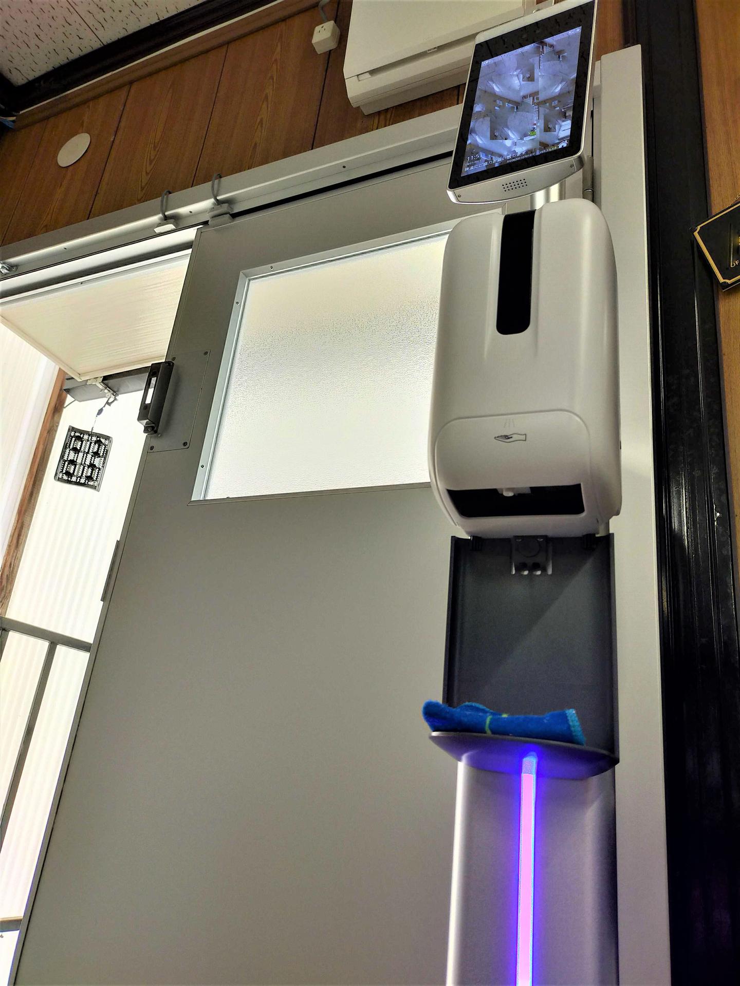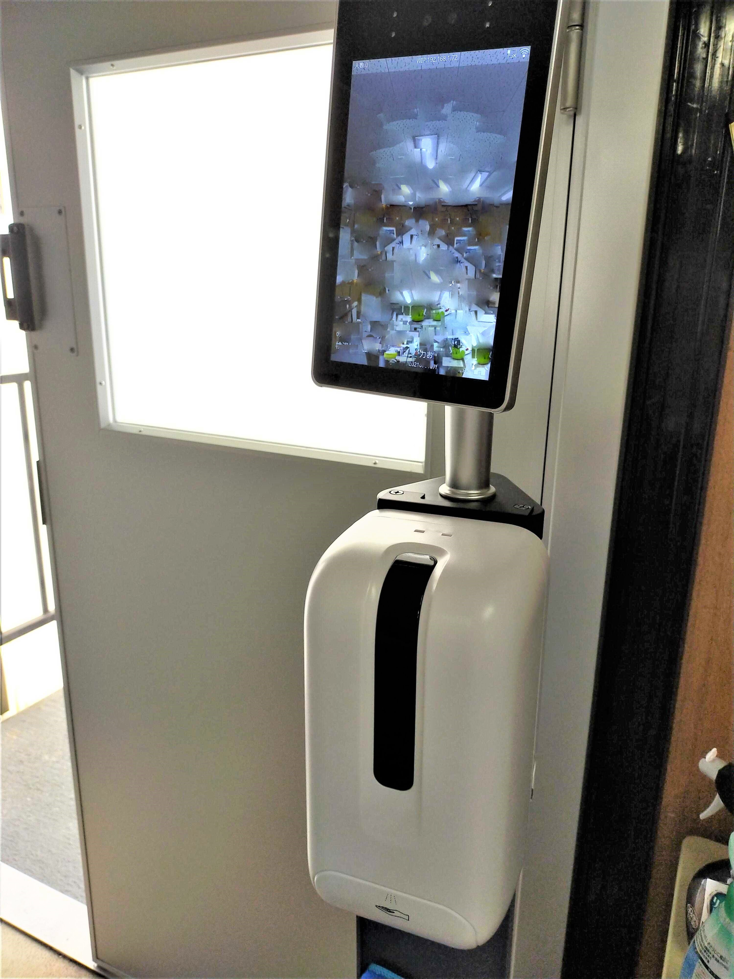 この子、接触しずに熱を測ってくれて、消毒液まで吹きかけてくれるという…