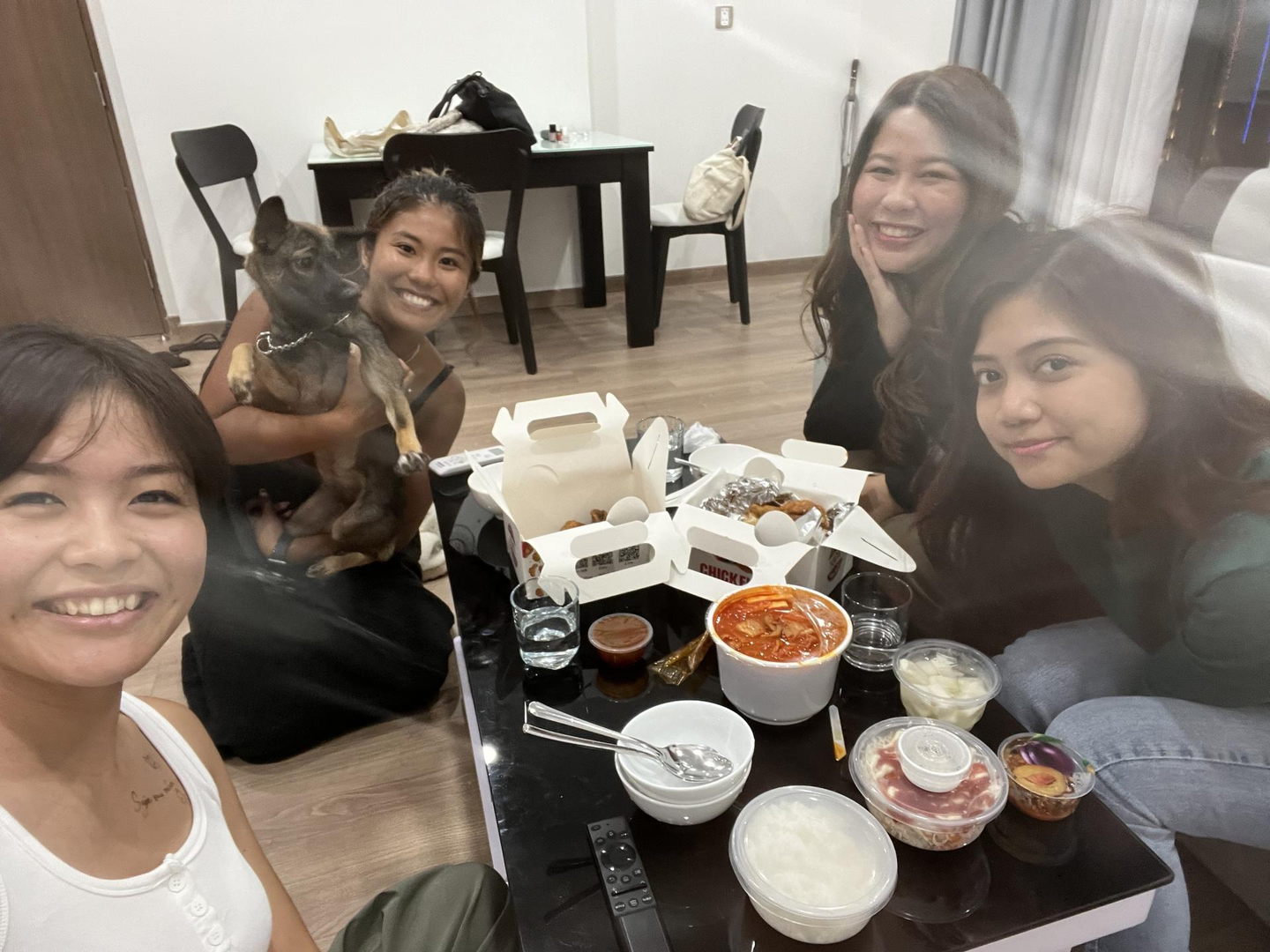 📷ルームメイトのタイ人&インドネシア人社員と日本人インターン生と。ベトナムはデリバリー天国。