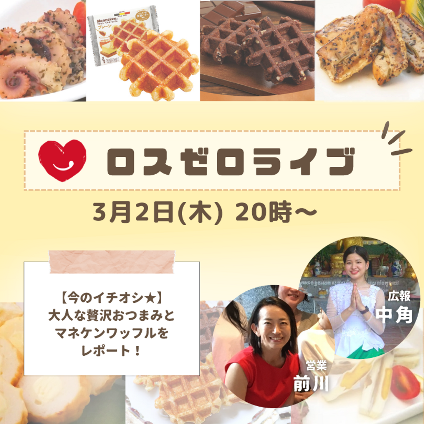イベント期間が過ぎてしまったおせち「おそち」や3分の1ルールで賞味期限を残したままロスになった「スムージー」コロナ禍の外食制限で余剰になった業務用調味料など、試食で食レポもしながら、楽しく配信しました!