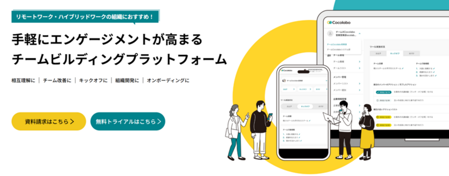 2020年のサービス公開以来、多くの企業の組織開発・課題解決を支援してきたチームビルディングのためのデジタルプラットフォーム「Cocolabo」。今回の大規模アップデートを経て、より実践的に“良いチーム”をつくるためのツールへと進化しました。開発に関わった3名に、こだわりや背景、そしてこのツールが目指す未来について伺いました。