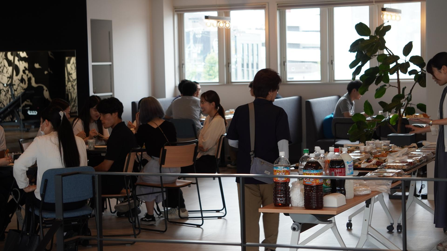 業務体験の前に社内でランチ会を行い、内勤メンバーと交流。