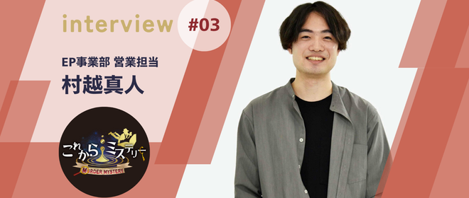 こんにちは! 株式会社これからミステリーの採用広報です。私たちは、「エンタメの力で未来を作っていく」というミッションのもと、マーダーミステリーを軸に、今まさに広がりを見せる新しいエンタメの形を生み出しています。〈劇場公演・アプリ開発・イベント企画・シナリオ制作・法人向け企画の営業〉など、領域は多岐にわたり、マダミス市場の最前線で、新たな価値をつくる挑戦を続けています。今回は、そんな中で“営業”という立場から事業づくりにも関わる、EP事業部の村越真人さんにインタビュー!インフルエンサーマーケティング業界から、未経験でこの世界へ飛び込んだ理由とは?なぜ彼は「マーダーミステリー」にそこまで魅せ...
