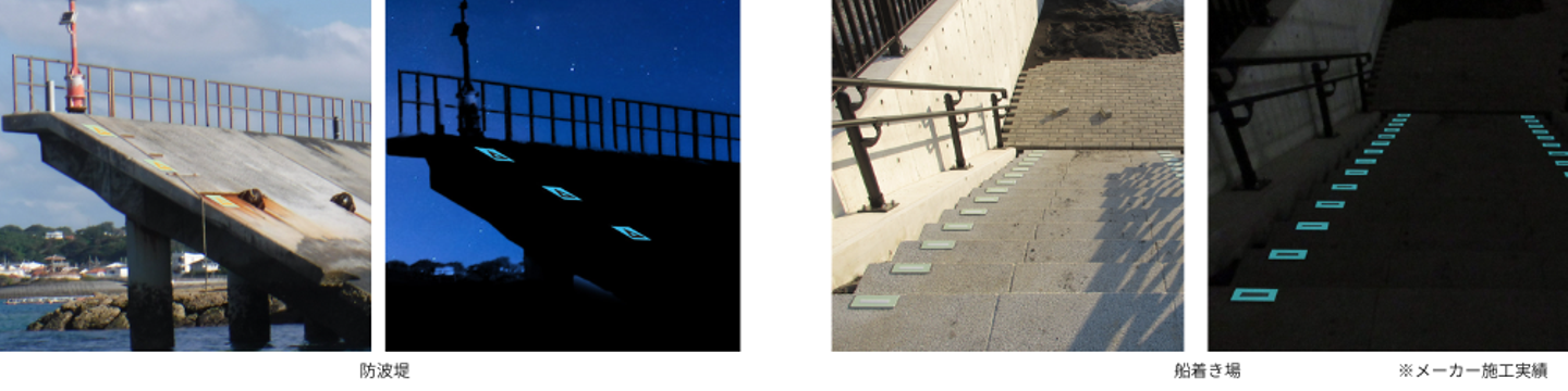私たちが取り扱う蓄光製品は、自治体・港湾施設・道路など、公共性の高いインフラ領域で導入実績を持つメーカー製品です。