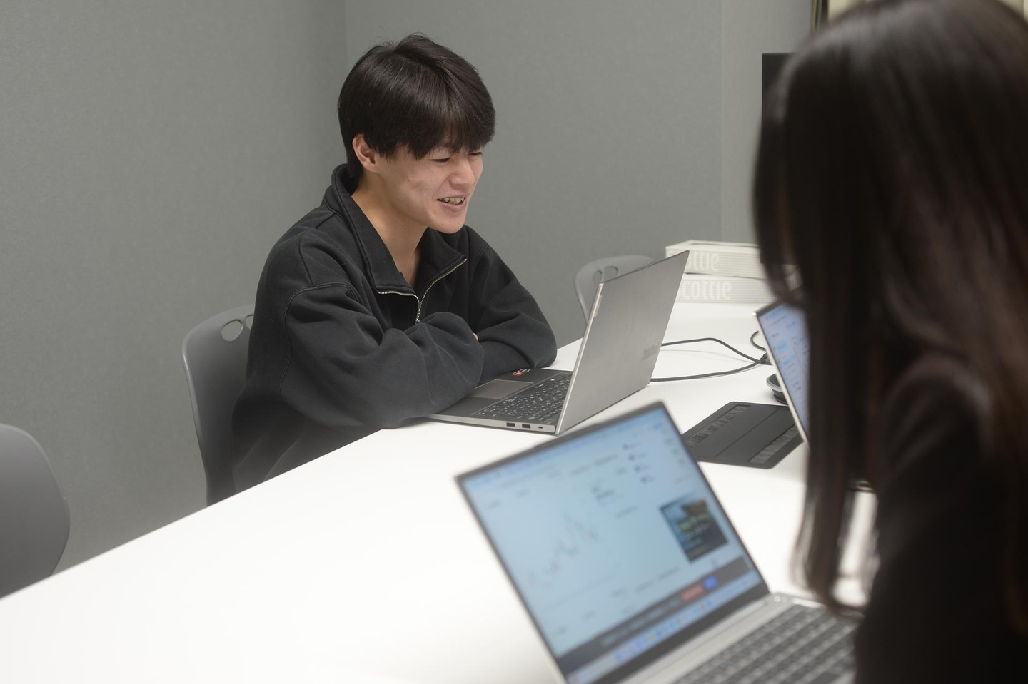 業務のフィードバックだけでなく、雑談も交えながら声をかけてもらえるので、質問もしやすい雰囲気があります。