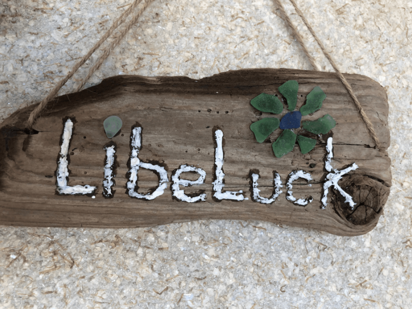 お金が無いので海で拾った木とガラスで作った看板