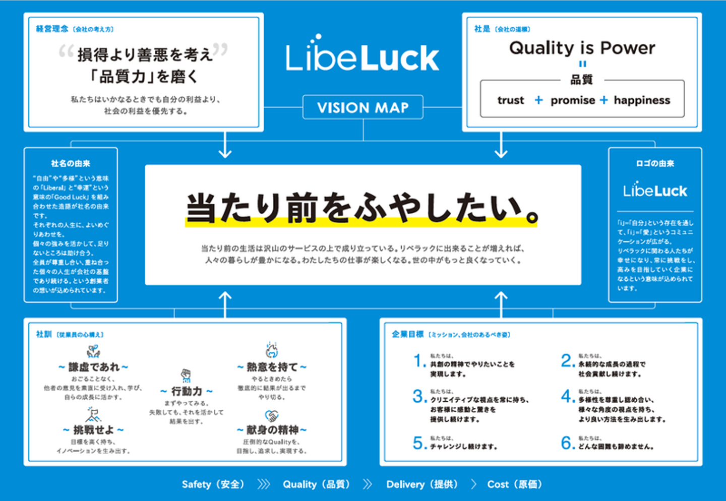 ”自由”や”多様”という意味の「Liberal」と”幸運”という意味の「Good luck」を組み合わせた造語がリベラックという社名の由来です。
