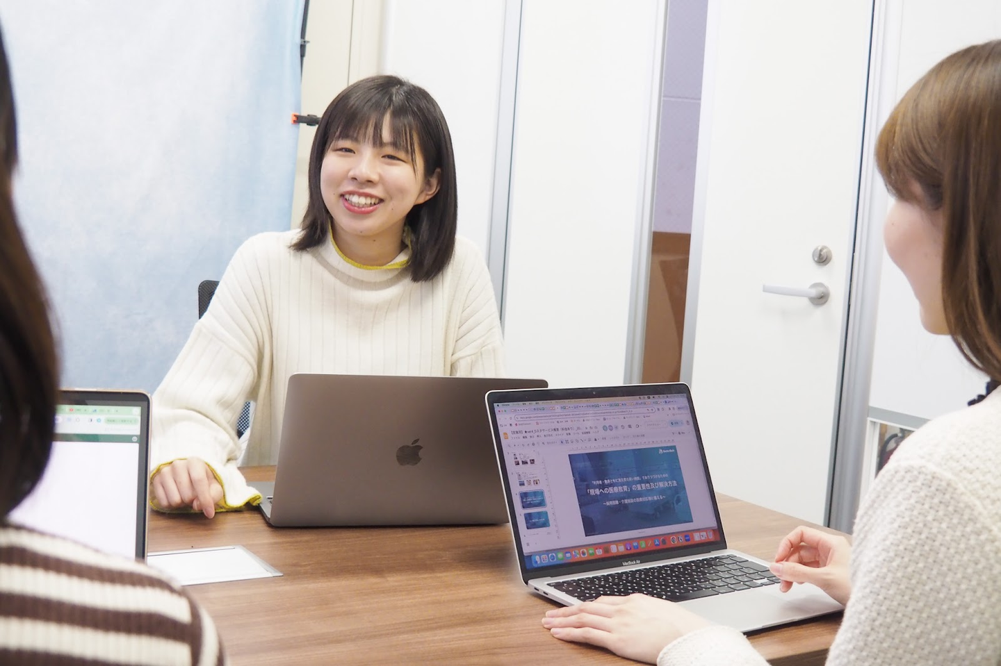 商談していて嬉しいのは、ドクターメイトのサービスについてお客様に良い口コミが届いているお話しを聞いたときや、ヒアリングへの提案がお客様に届いたときですね。チーム一丸となって活動しているので、ドクターメイトとして役に立てていると感じると、喜びもひとしおです♪