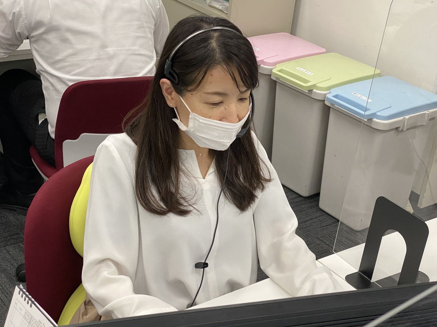 カスタマーのみなさんはアルバイトを含む7名で、お客様からの問い合わせを対応しています。わたしの働いている池袋支店では、テレアポさんも同じフロアで働いています。