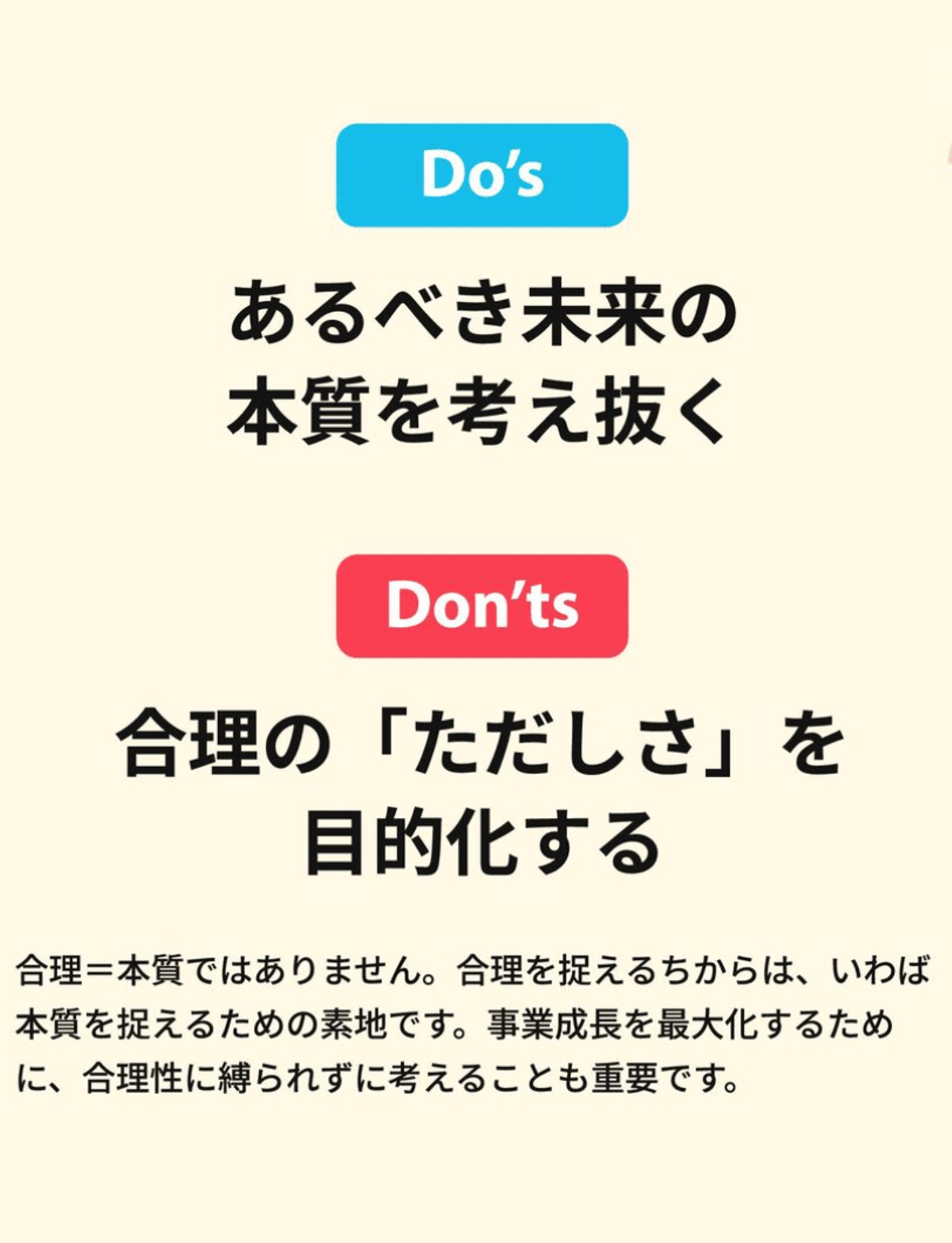 宮川:「あるべき未来の本質を考え抜く」です。自社においても、クライアントに対してもここを大切にしています。