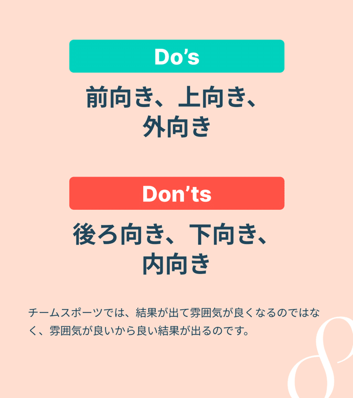「前向き、上向き、外向き」です。