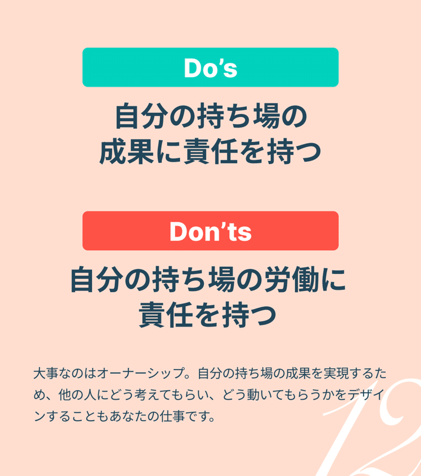 また、「自分の持ち場の成果に責任を持つ」も徹底されています。
