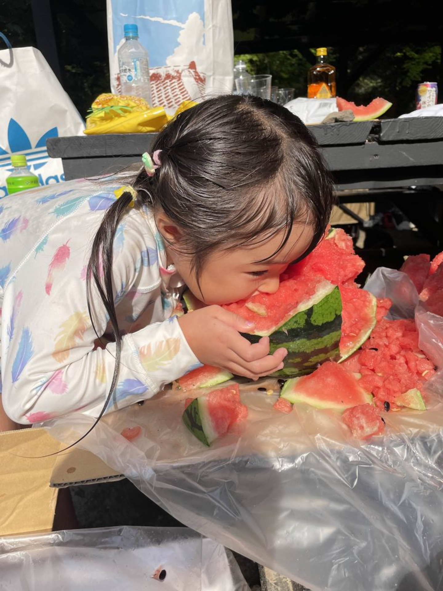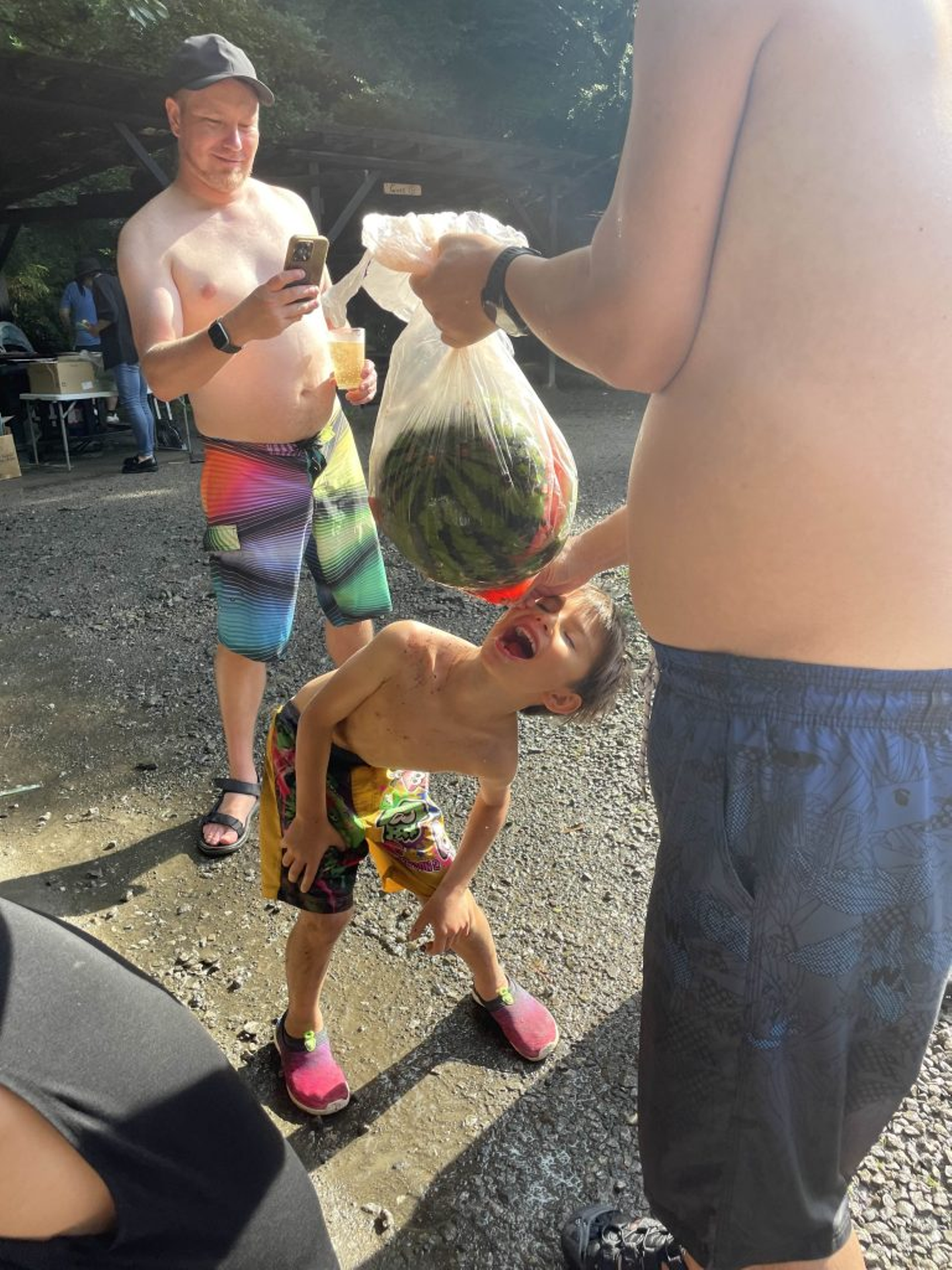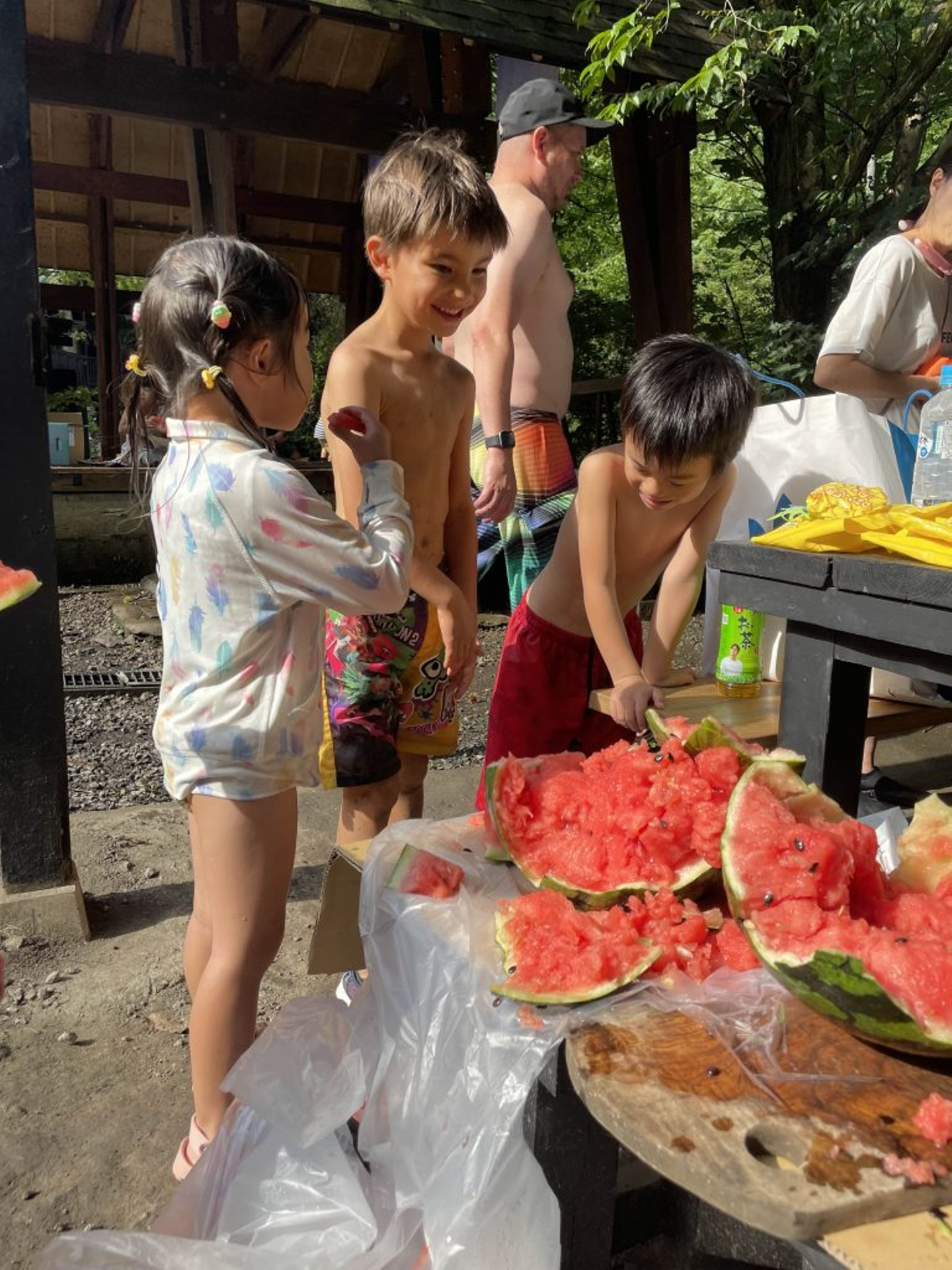 子供たちにも順番でスイカ割りを楽しんでもらいました。
