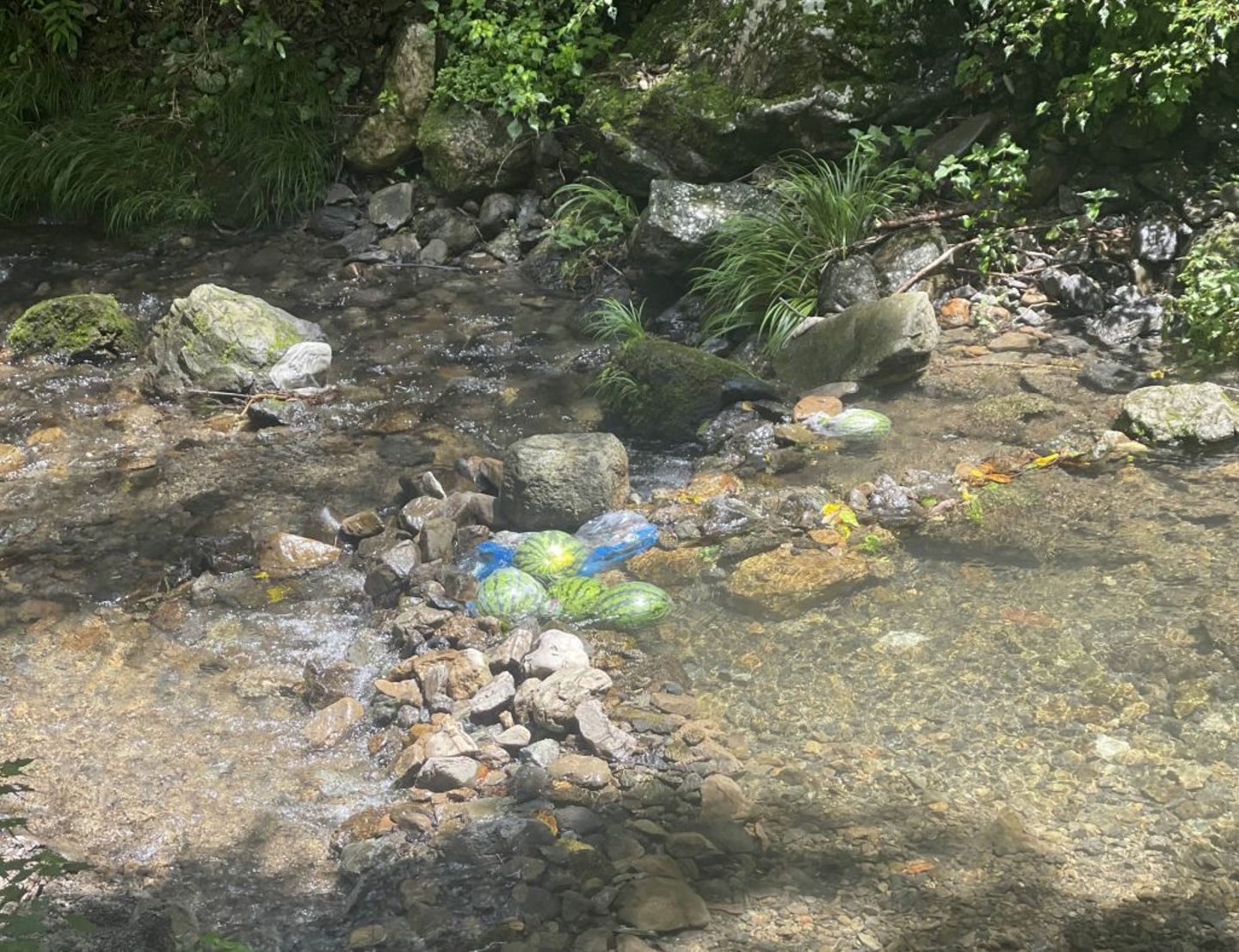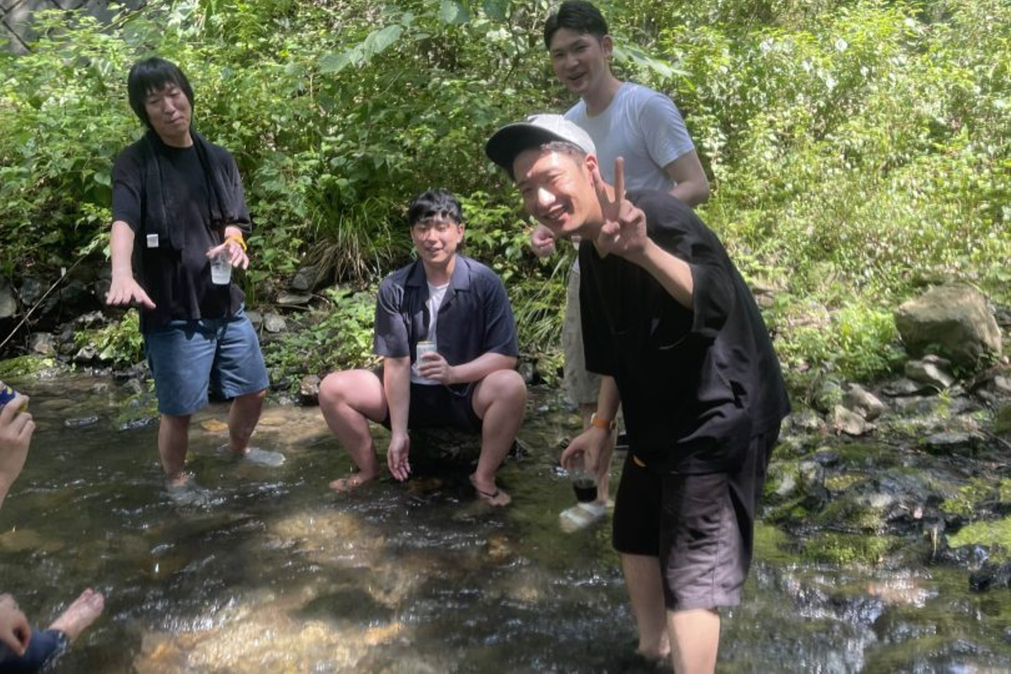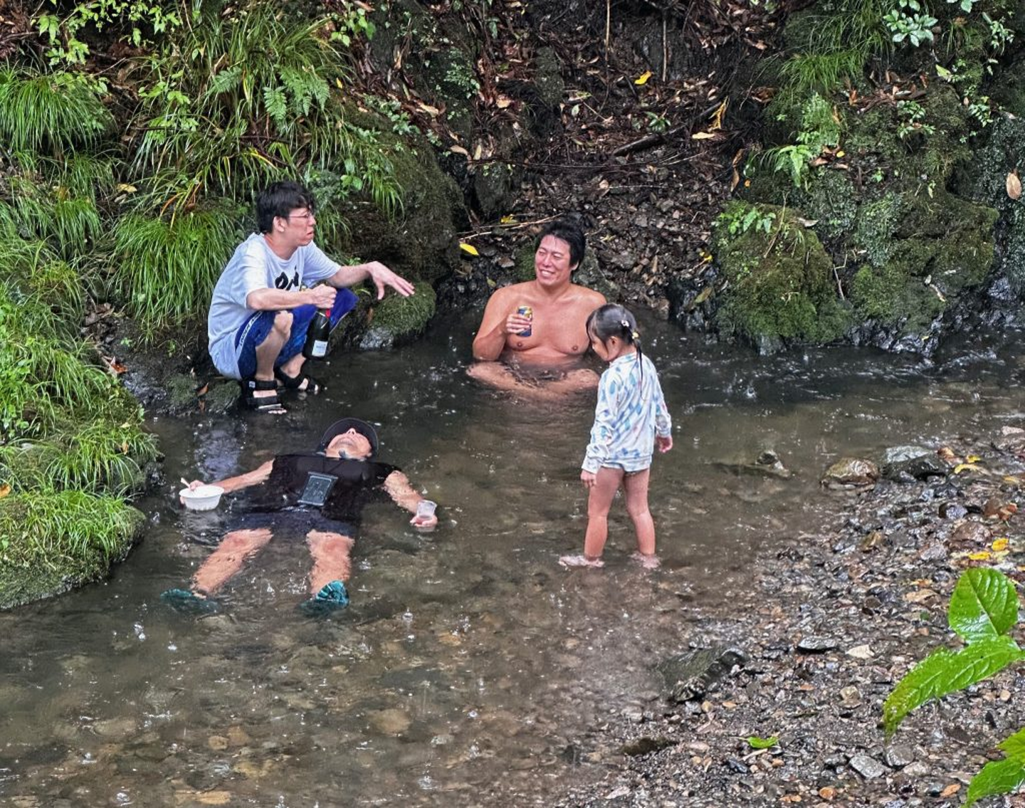 灼熱の暑さに、川の水が冷たくて気持ちいい!