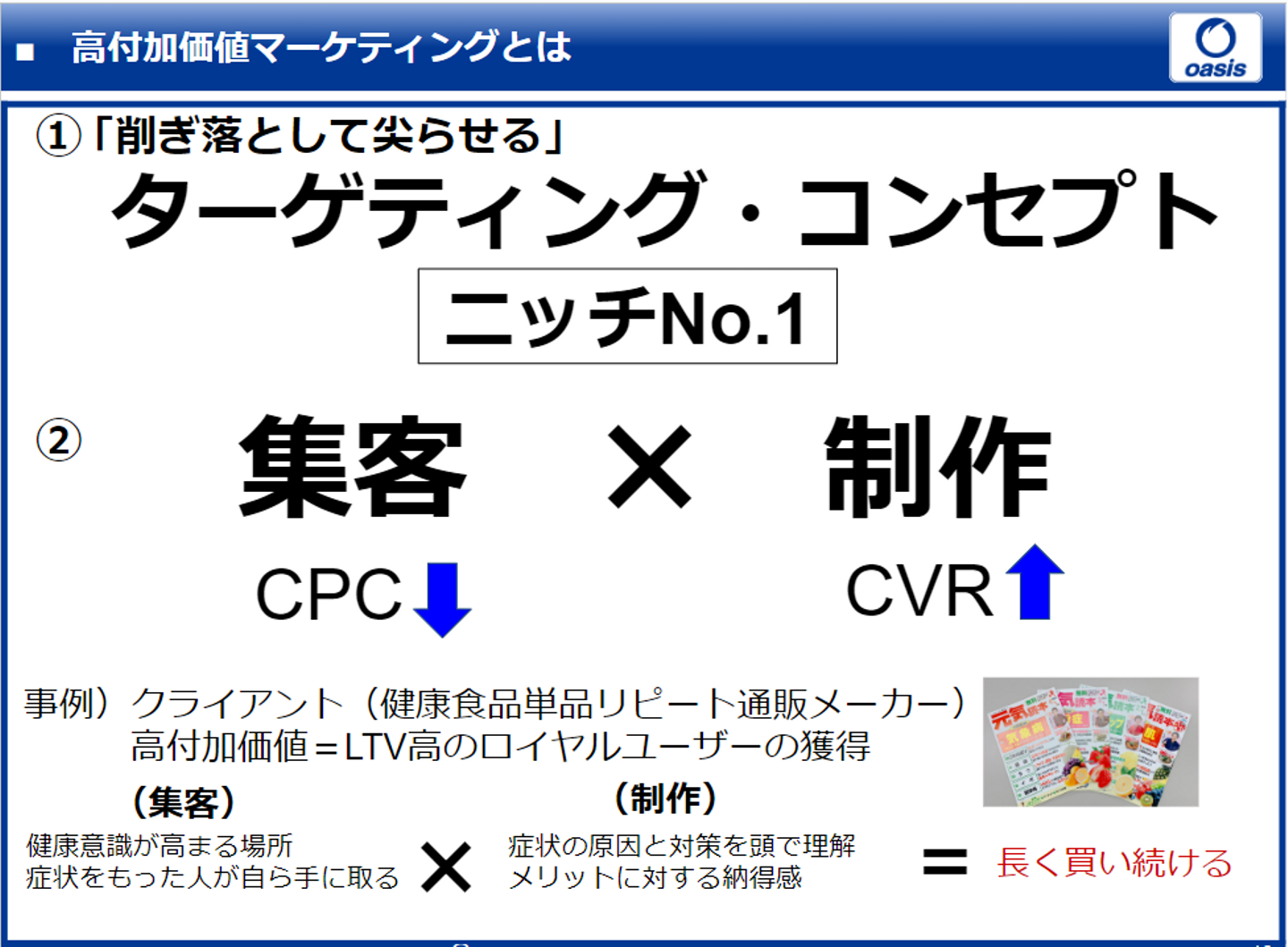 そしてそれは、オアシスの強みとする「高付加価値マーケティング」という商品へとつながっています。