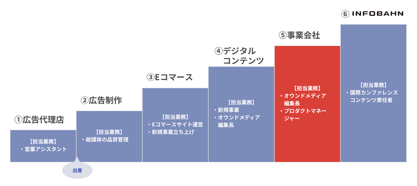 - 元ダンサー。 出産後に幅広い業界を渡り歩き、デジタルコンテンツの世界へ