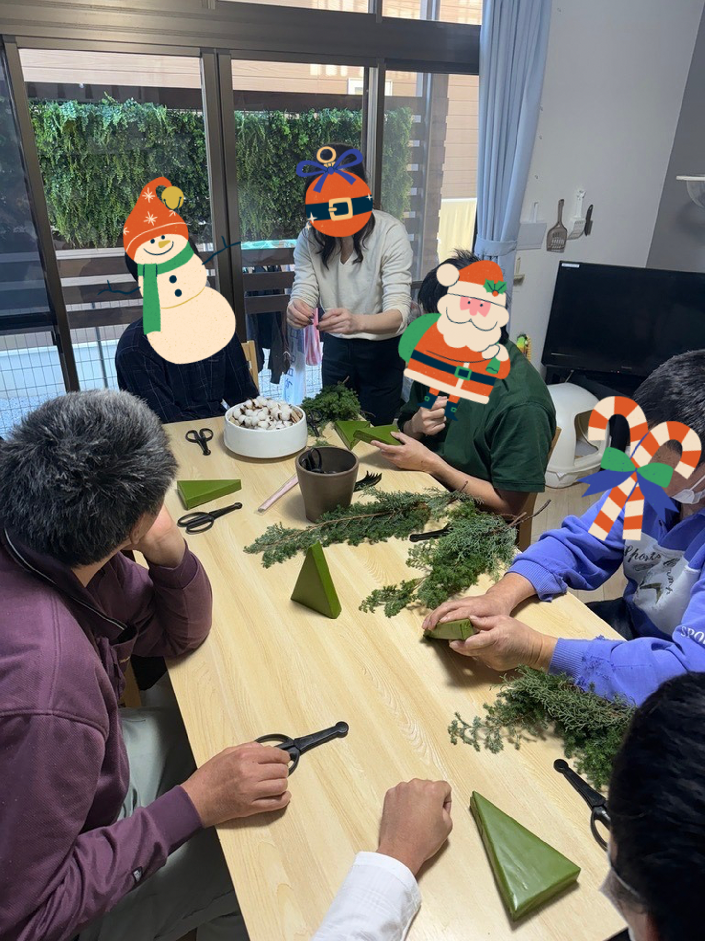 障がい者グループホームSMILE HOUSEでは、季節の行事に関連した”モノづくり”のワークショップを定期的に開催しております。ワークショップは自由参加ですが、いつもは交流のない他ホームの利用者さんと会えることもあって、みなさん楽しみにしています。今回は、クリスマススワッグを作成いたしました🎄