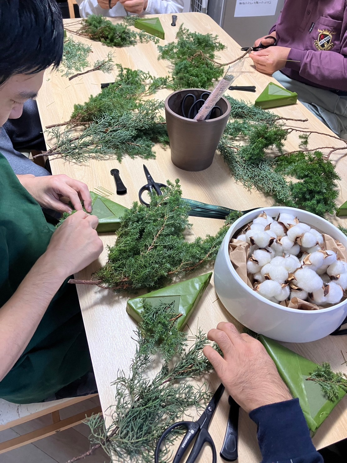 Iさん「みんなモクモクとやっていた。スポンジに枝を刺すのは少し硬くて大変だったけど、慣れたら簡単にできるようになった。自分は飾りを10個選ぶのが大変だった。気づけば2個も作っていた」