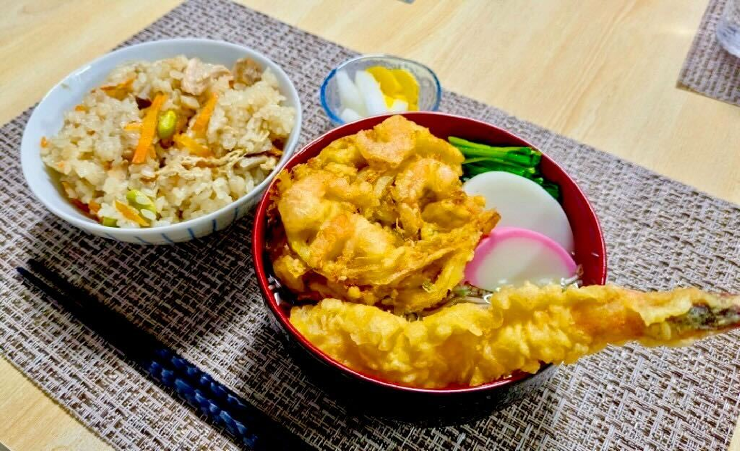 年越しそばの天ぷらは、毎年恒例、某うどん屋さんの特大えび天ぷらのために職員が朝イチで行列に並び、のし餅はいつも美味しいお米を届けてくれるお米屋さんにご協力いただき、またお雑煮は世話人さんオリジナルの味で各々作ってくださり、「もっと食べたい!」との声が出るほど利用者のみなさんには喜んでいただきました。