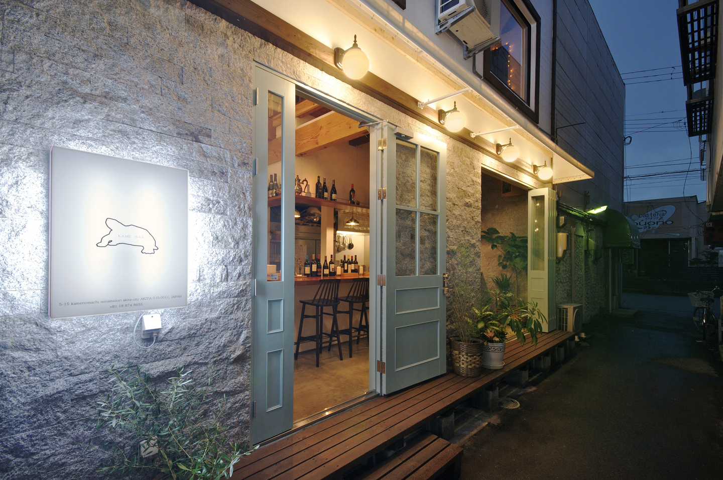 2013年秋田市の中心市街地から少し外れた場所(南通亀の町)に狸小路という暗くて、人が寄り付きそうもない(w)場所を見つけます。それまでは自分が飲食店をやらなくても、クライアント(お店を出したいと考えている方)に出店を促しプロデュースできればとも考えていたけど、前述の通り人が寄り付くイメージを持ってもらえず至りませんでした。ならば「自分でやってみよう」「使われなくなった建物を、この時代にあった見かたで変えよう」と一念発起することに。当時はまだ東京の超人気バルで修行していた友人の畠山 満に思いを伝え、参加を決意。すぐにスペイン行きのチケットを取って二人でバル巡りでかけました。