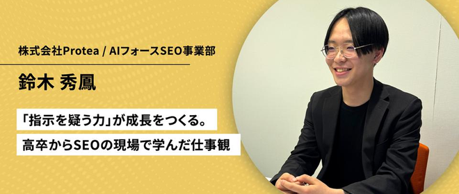 「成長したい」「WEBで価値を生み出したい」——その想いを本気で形にできる場所です。 株式会社Proteaは、WEBマーケティングを軸に、戦略立案から広告・SEO・SNS・制作までを一貫して手がけています。 少数精鋭だからこそ、一人ひとりの裁量が大きく、挑戦できる環境。 実践を通してスキルを磨き、自分の成長が成果として返ってくる。そんな仕事を一緒にしませんか。