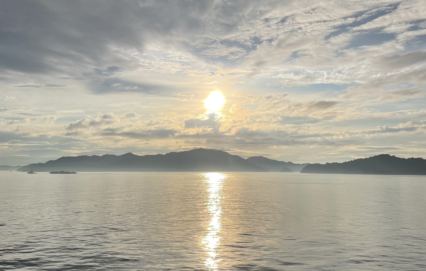 ※現地インタビューの道中、船からとても綺麗な夕日が見えました!