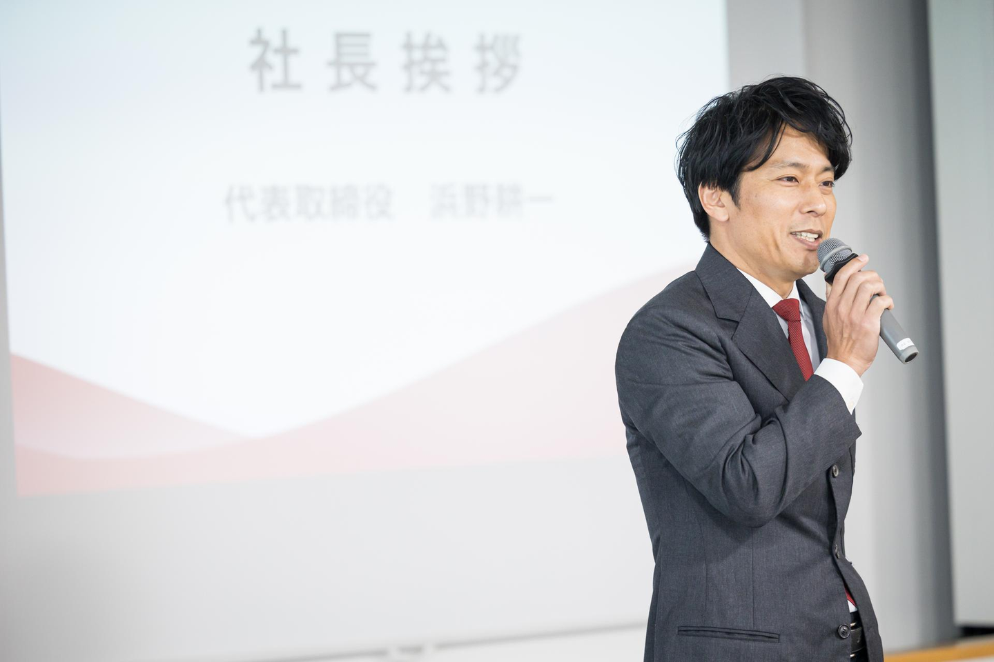 社長の挨拶です。人に何かを伝えるときの社長はいきいきしています。