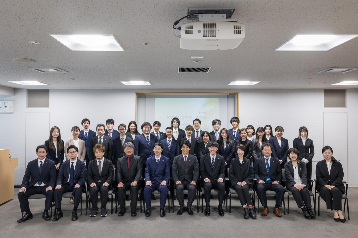 入社式はオフィスではなく、会場を貸し切って開催しました!