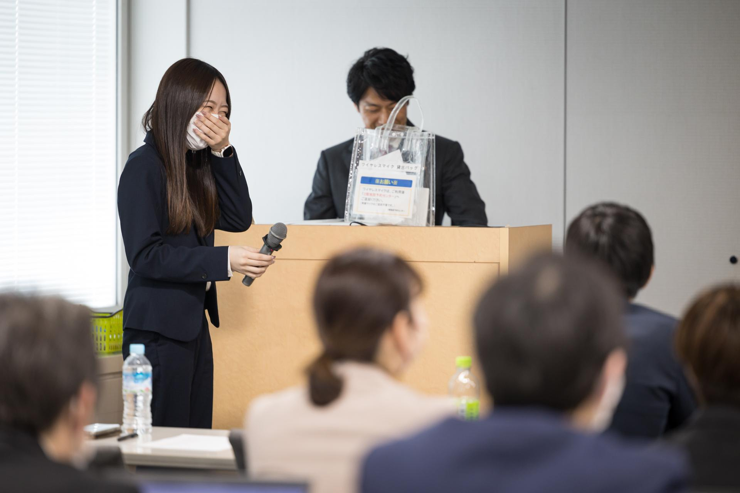 司会進行と社長が談笑。始まる前から楽しそうですね(笑)。何を話しているのでしょうか。