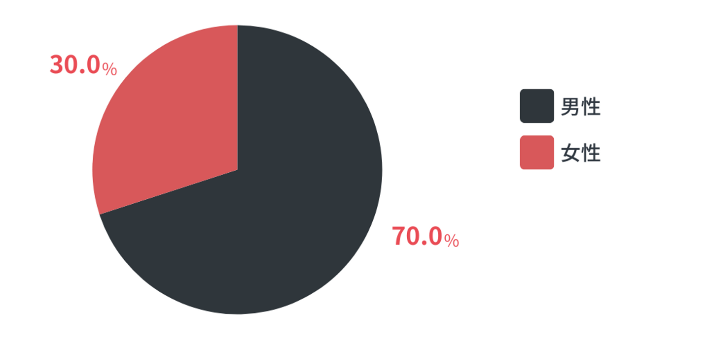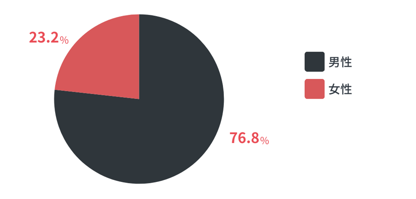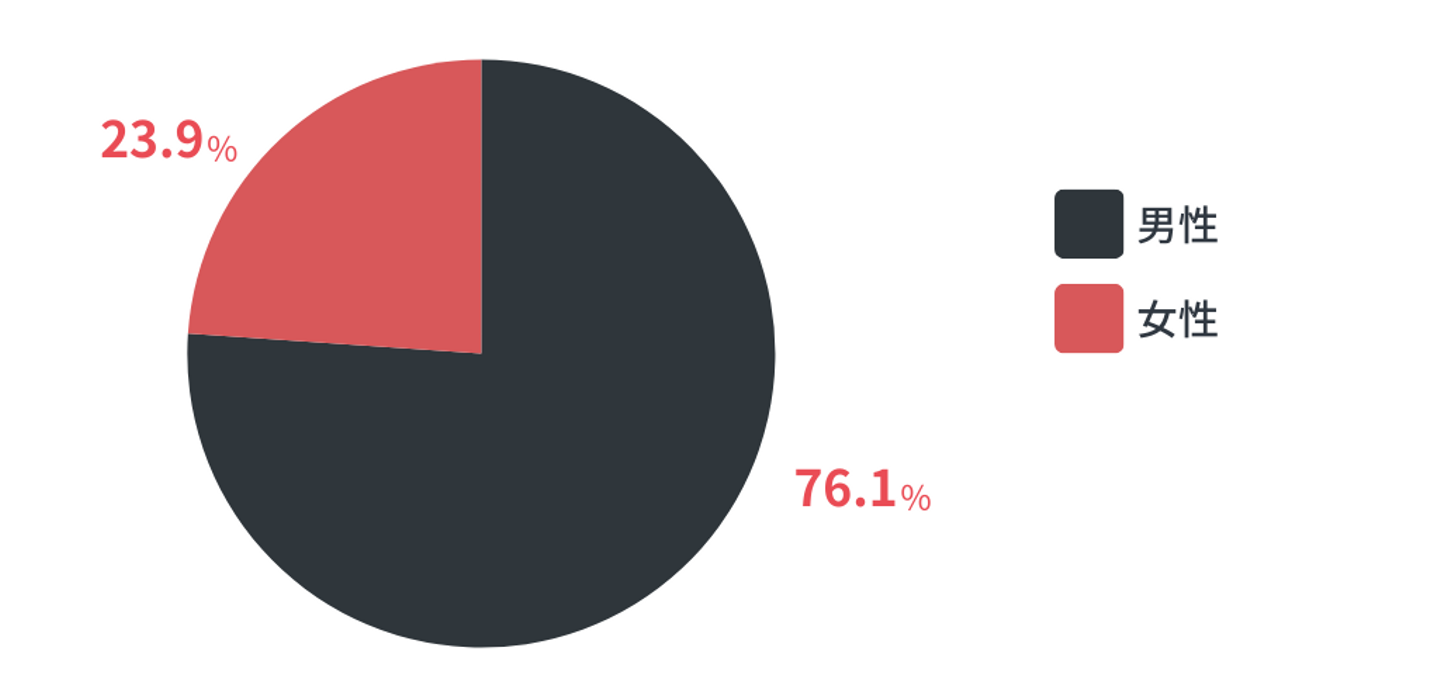 現在の男女比率は、全体で男性76.1%、女性23.9%。 エンジニアは男性76.8%、女性23.2%。管理部は男性70.0%、女性は30.0%でした。 2024年5月にLIBRUS株式会社が公開した記事によると、ITエンジニアの就業者に占める女性比率は約20%とあります。業界平均を少し上回っているものの、より多くの女性メンバーが力を発揮できる職場環境の実現に向けて取り組んでいきたいです。 (参考: https://librus.co.jp/it_career/article/market/1110 )
