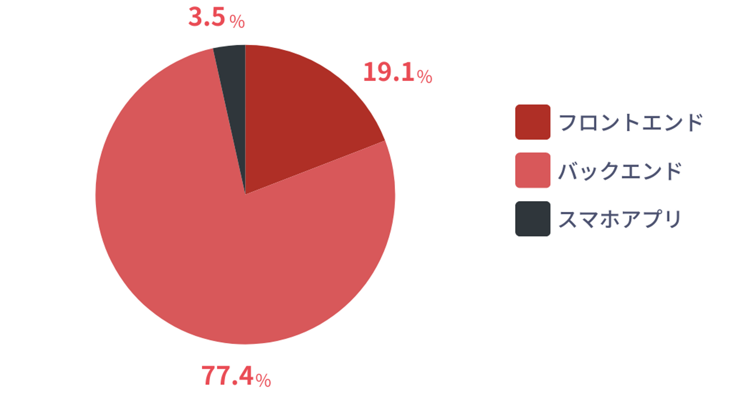 Marvelのエンジニア構成を見ると、バックエンド領域が全体の77.4%を占めており、主要言語はJava(36.4%)、Python(22.2%)、PHP(16.2%)、C#(13.1%)など、Web系言語が中心となっています。 フロントエンドではReactの利用率が76.0%と圧倒的に高く、モダンな技術を活用したプロジェクトが多いのが特徴です。 また、Marvelで月に一回開催している社内勉強会では、React、Python、AWS、Goをテーマとして取り扱い、最新技術へのキャッチアップや知見の共有を積極的に行っています。