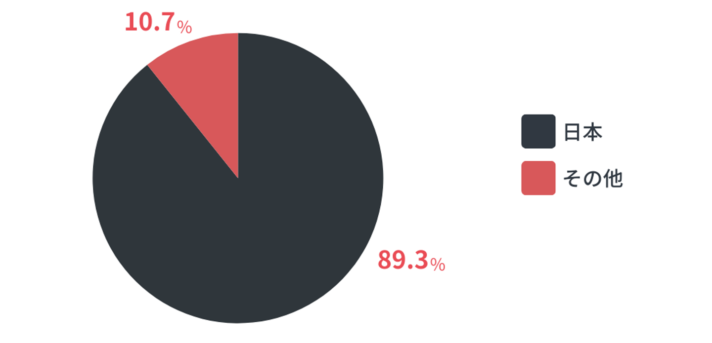 3|国籍 社員の国籍は日本が89.3%、その他の国籍が10.7%であり、現在は22名の外国籍社員が在籍しています。 日本を含めて14カ国から社員が集まっており、その多様な国籍やバックグラウンドが組織に新たな視点や可能性をもたらしています。