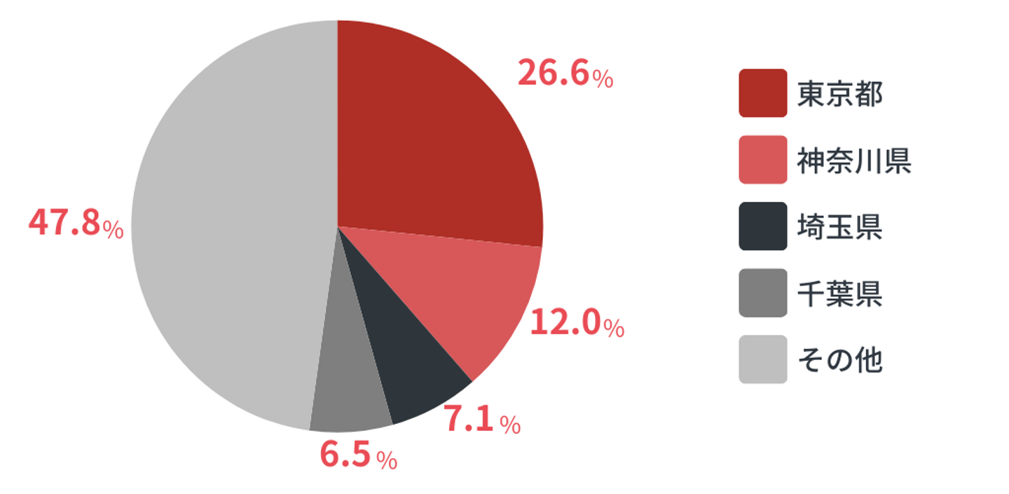 4|居住エリア 2025年9月現在、社員の居住地は、東京都が26.6%、神奈川県が12.0%、埼玉県が7.1%、千葉県が6.5%、その他のエリアが47.8%となっています。 また、Marvel社員の特徴の一つとして、北は北海道、南は沖縄までの社員が在籍していますが、中でも大阪、北海道在住の社員が多く在籍しています。(大阪 6.1%、北海道 5.6%)