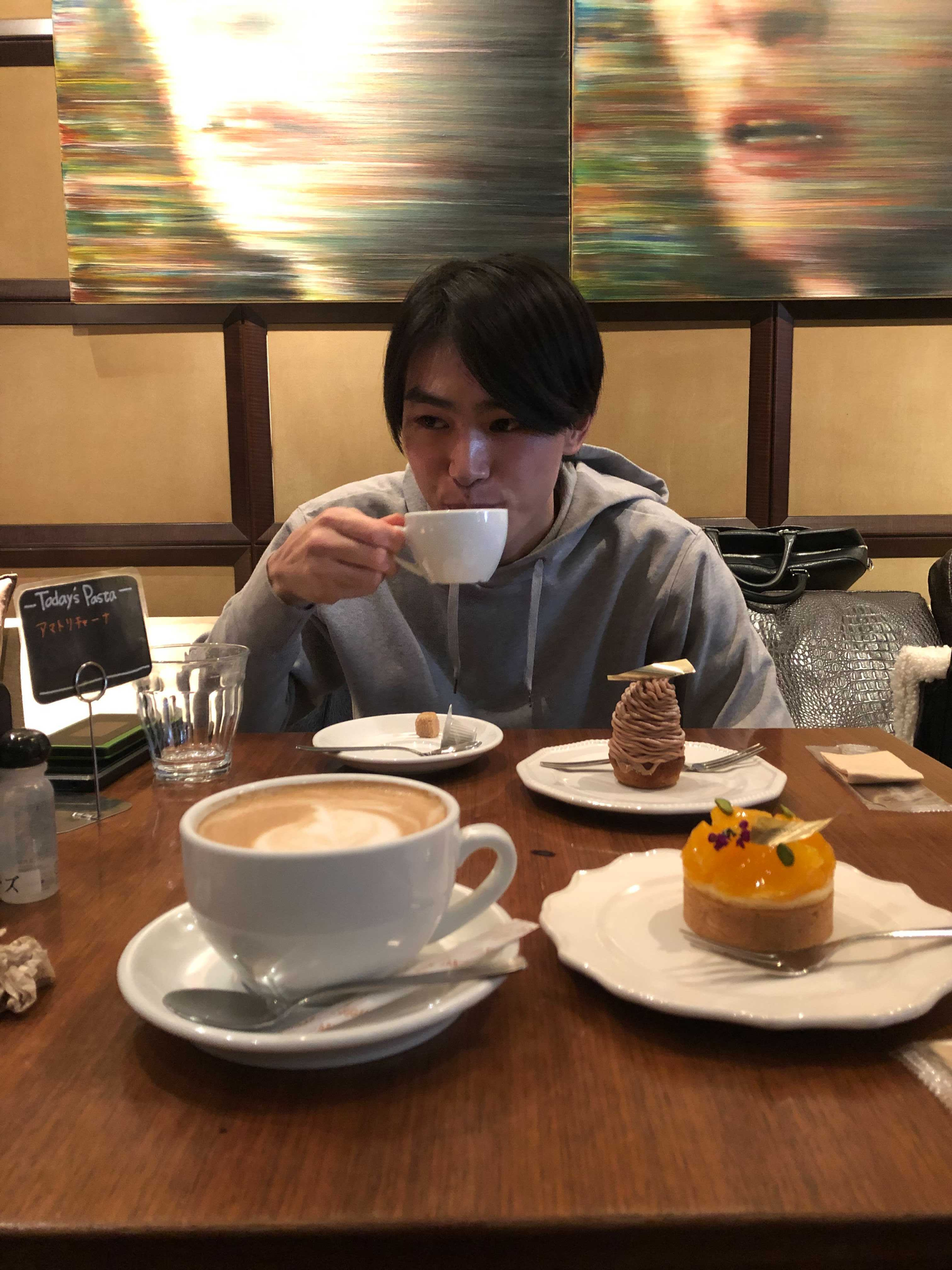 (麻布十番のカフェで打ち合わせをする福太郎)