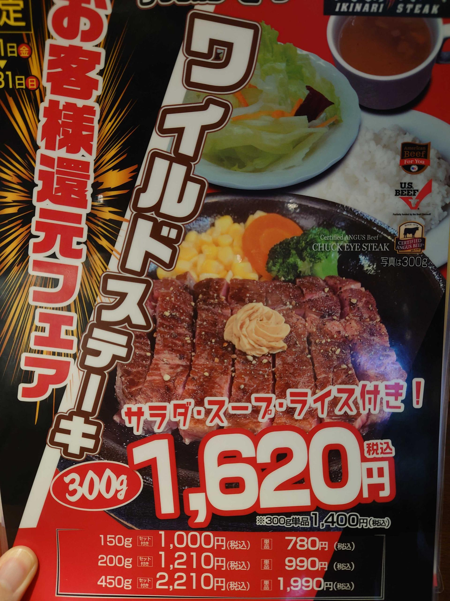 いきなりステーキが「ワイルドステーキ1,000円」のお客様還元フェアを実施していました!!