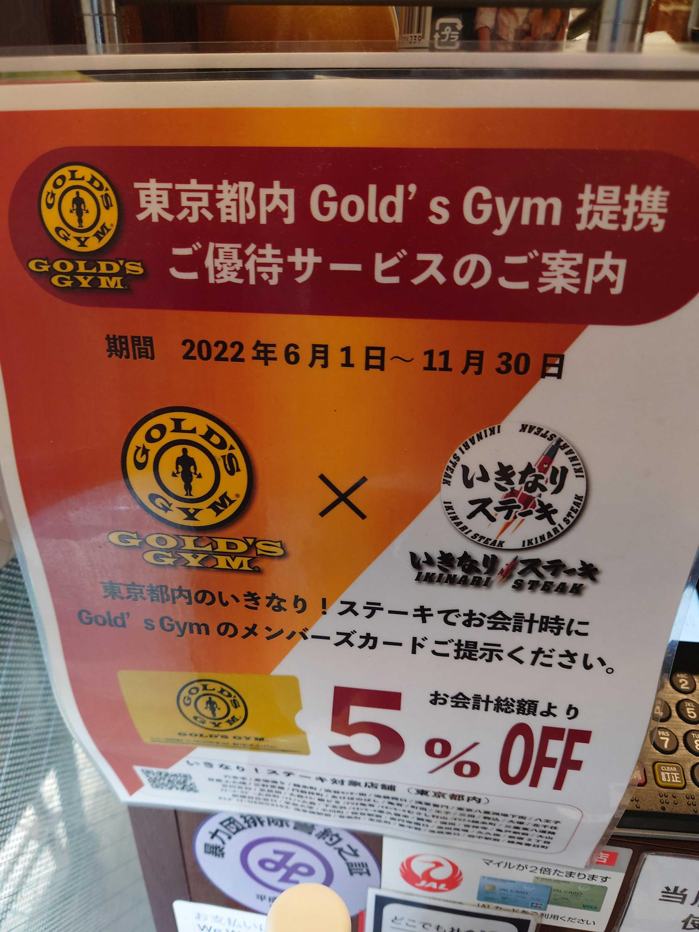 ゴールドジムの会員なら5%OFF!!