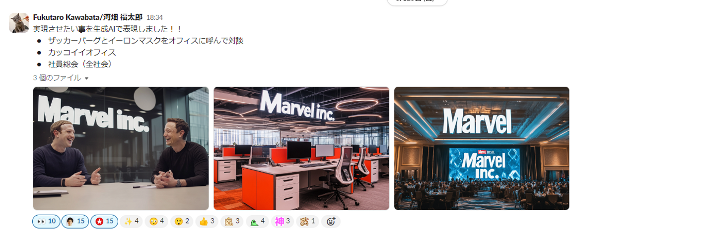 ということで、今回はMarvelのslackの実用事例と社内コミュニケーションの様子を一部ご紹介いたします。